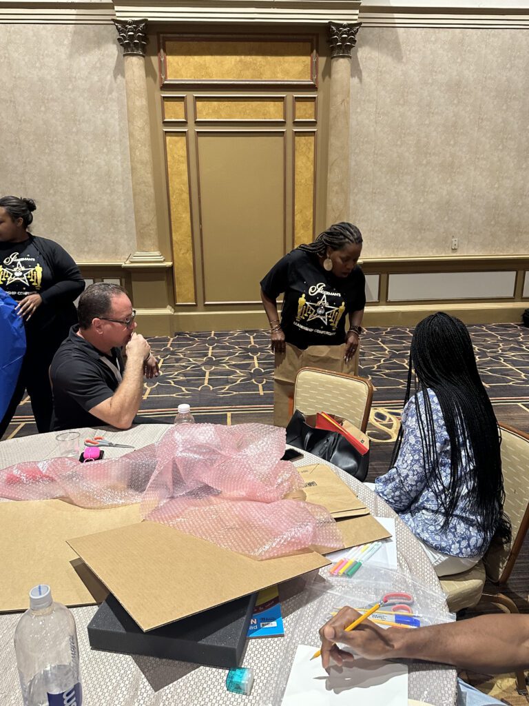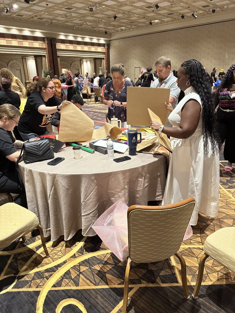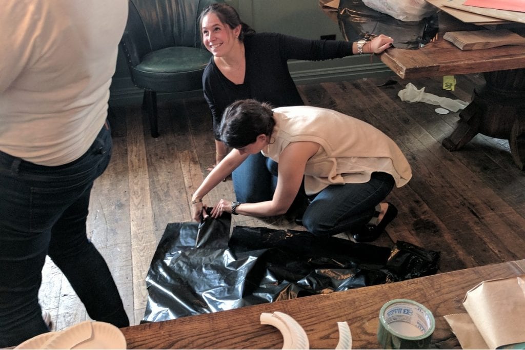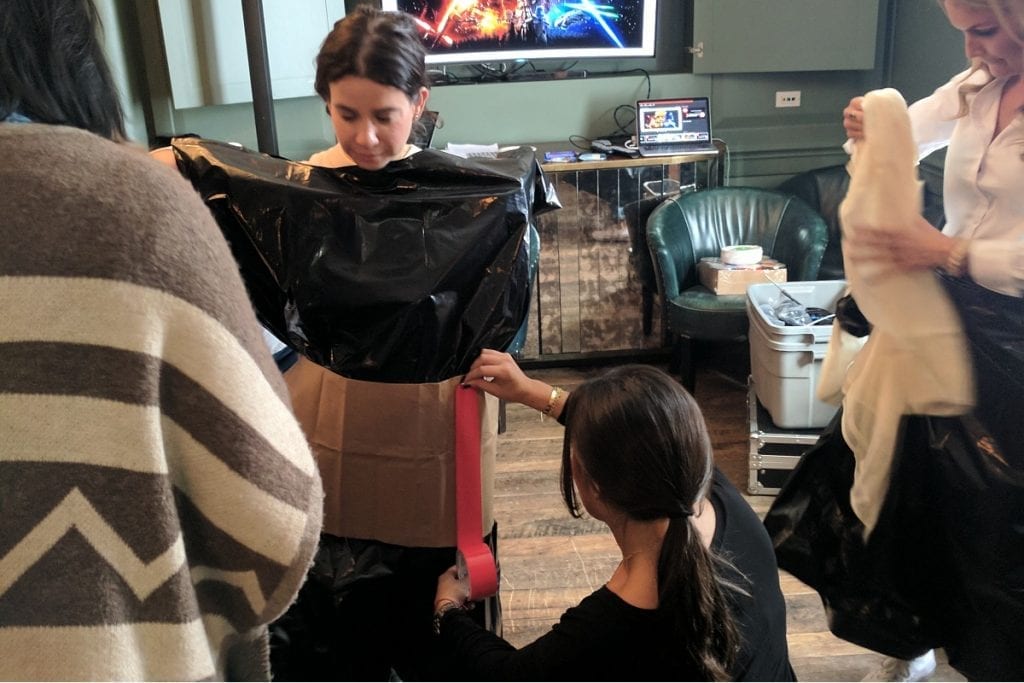 Teams receive a mix of fabrics, trims, accessories, and design materials, plus anything special your company requests. It’s everything needed for an unforgettable fashion team building challenge.