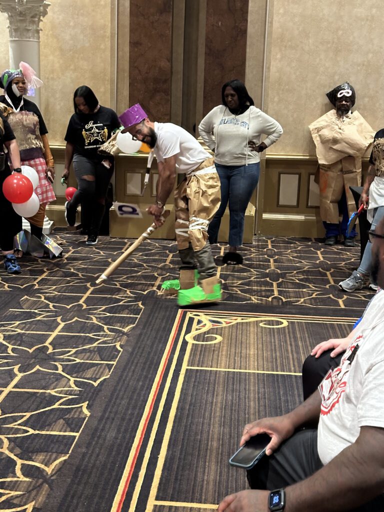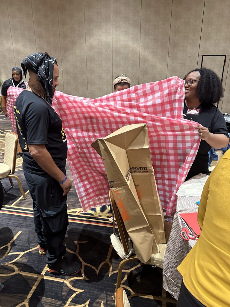 As in the real fashion world, everything comes down to the moment of truth – the big runway show. Teams select some members to model their creations on the catwalk. Others get to describe and pitch their looks to the panel of judges (yours or ours). It’s difficult to communicate just how much contagious laughter this runway show generates. Not to mention the crazy photos for social media and/or newsletter content.
