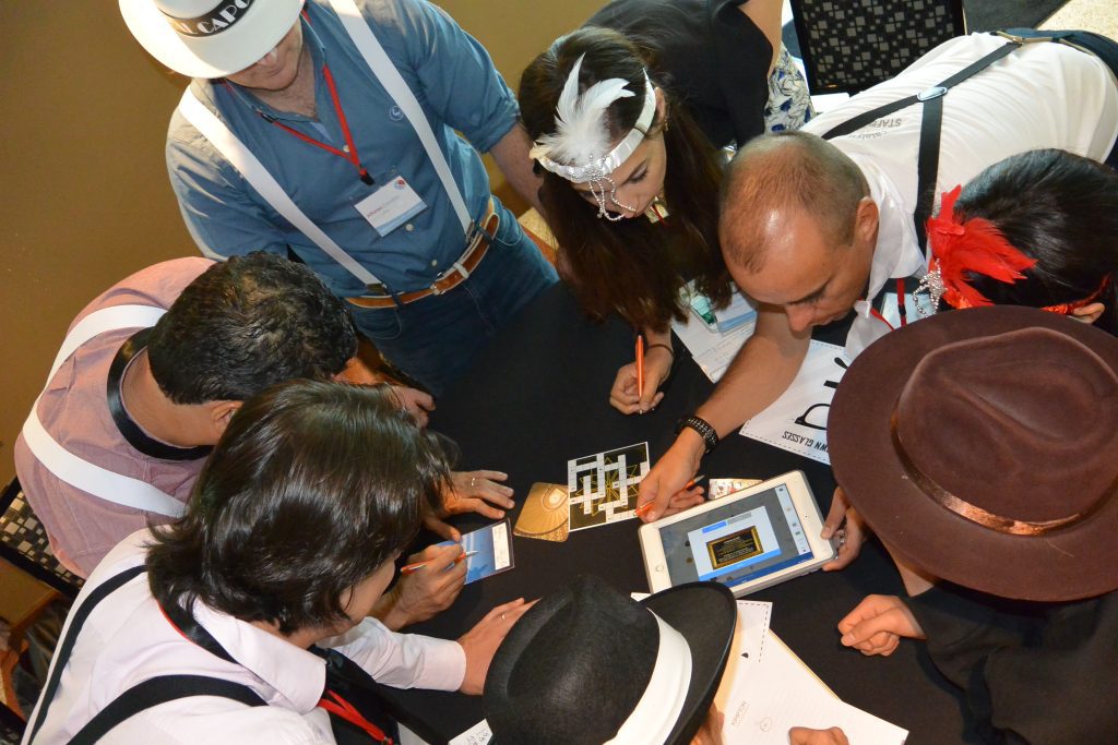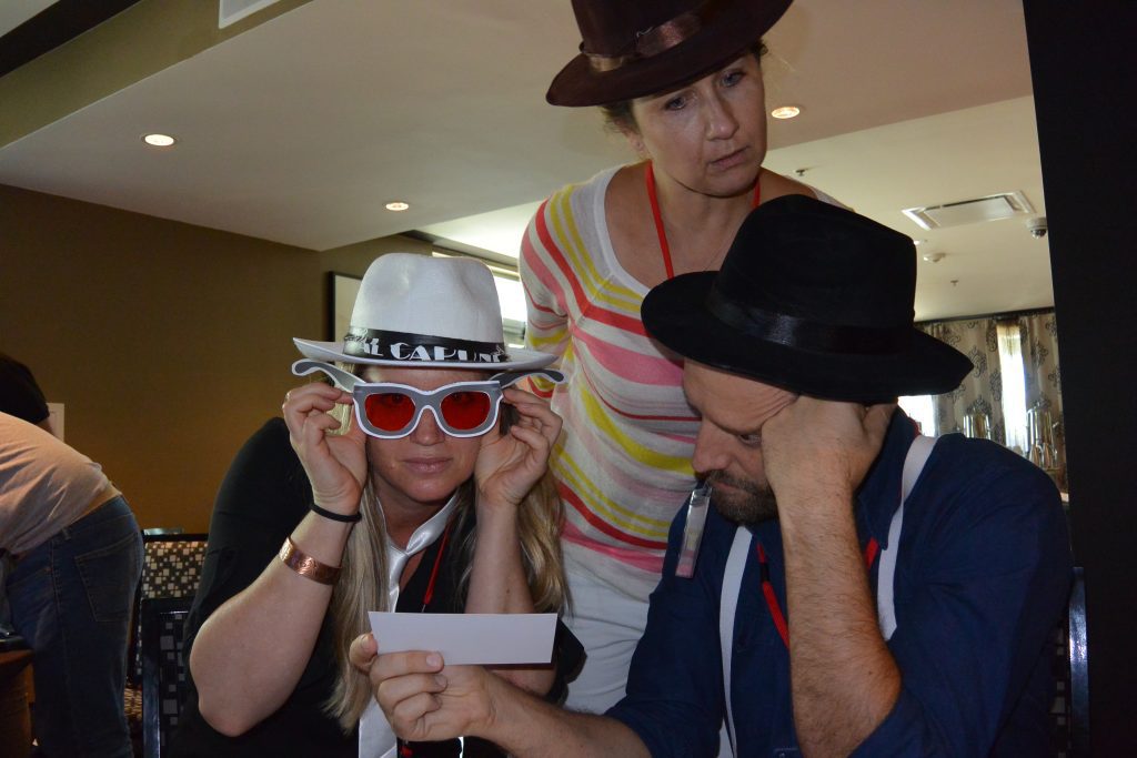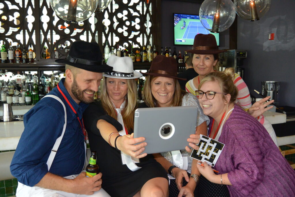 This interactive murder mystery game is an indoor/outdoor production. For starting and ending the event you’ll need an indoor space equipped with a projector, screen, microphone and speakers. You’ll also want a walking area nearby for the high-tech hunt portion of the game.