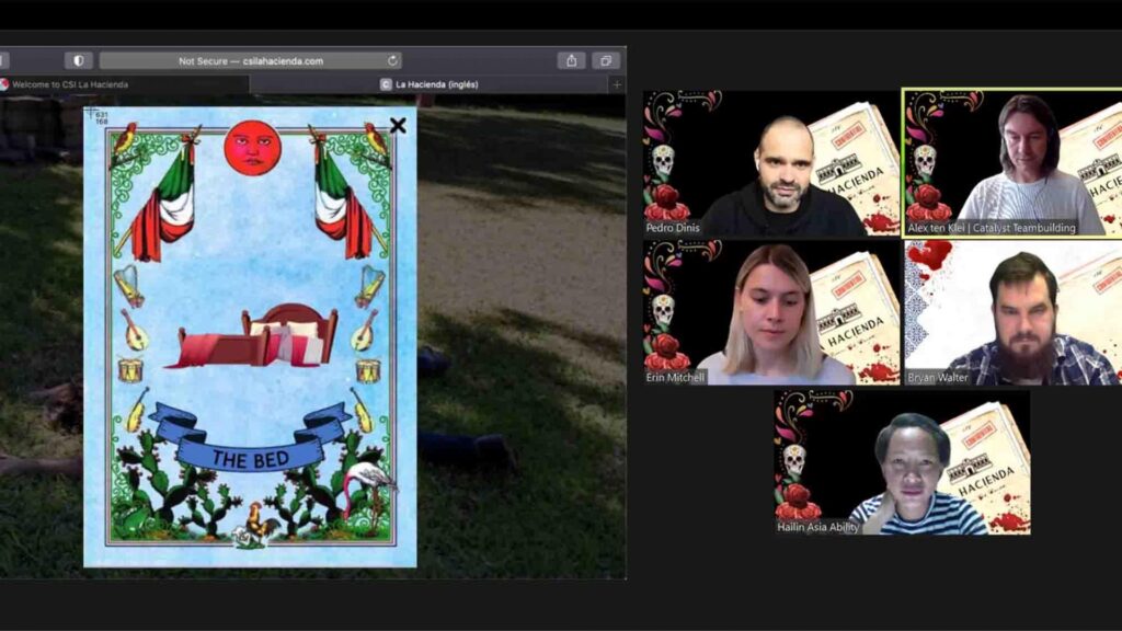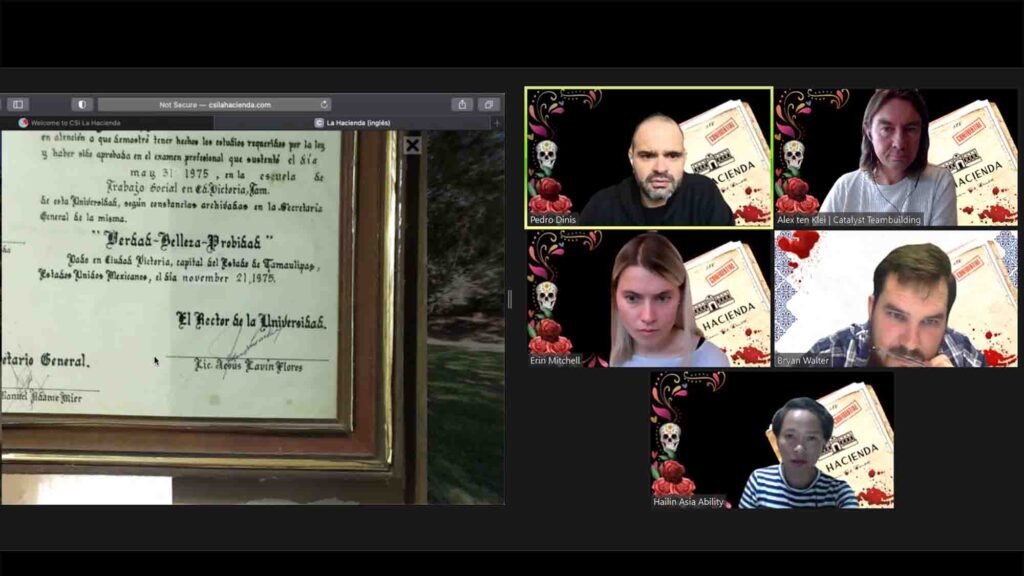 We need your help! CSI La Hacienda takes your team along to solve the mystery of the death of Enrique Gonzalez at his hacienda (estate). Using our web based 3D Virtual Touring Platform your team will explore the estate looking for clues. Moving from room to room, your team will need to work together to complete different riddles and challenges in order to unlock hints to solve the mystery. Participants will need to use collaborative deductive reasoning and team consensus to eliminate suspects. The team who accurately answer the challenges the fastest will be the first to discover the truth.