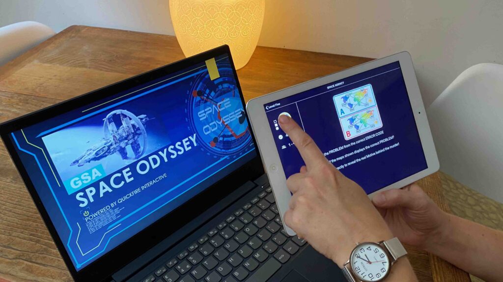 CSI Space Odyssey takes your team on a murder mystery adventure inside a deserted spaceship. With amazing graphics and escape room style riddles, all players are guaranteed to be engaged throughout. Guided by our professional facilitator using our proprietary QuickFire app, teams combine their collective strengths, working through successive game levels to unravel the evidence. Each level unlocks 3D animations revealing, uncharted sectors of the ship, prompted questions, and associated conundrums. Constant communication is vital as teams puzzle through clues in the form of online dossiers, animated videos, and cryptic puzzles. Shared observations help the teams progress to solve the virtual murder mystery.