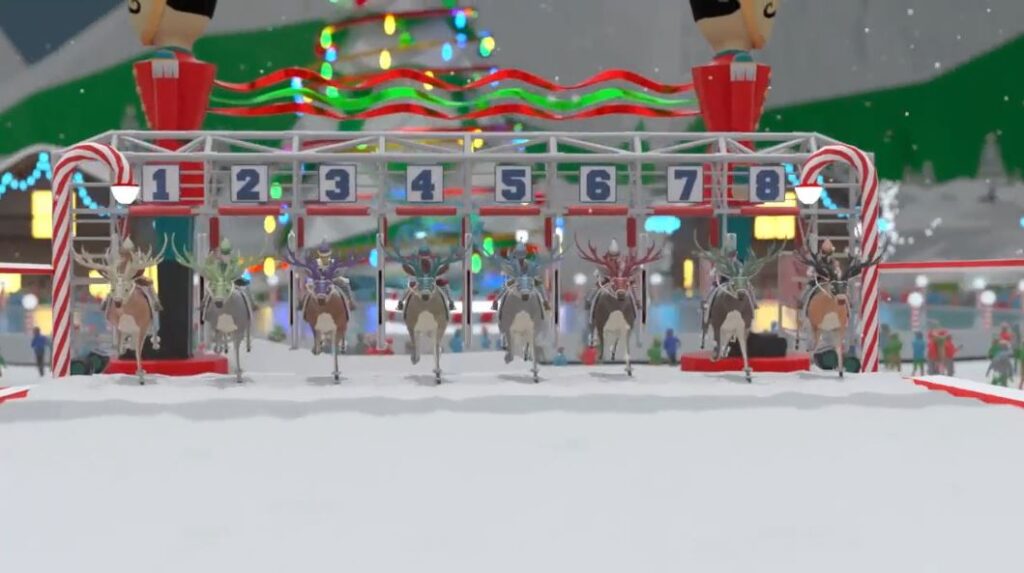 This is an animated event in which each participant must select their champion reindeer before feeding it and preparing it for races, which take place every 10 minutes. It’s a fast-paced experience packed with strategy, quick decisions, and excitement.