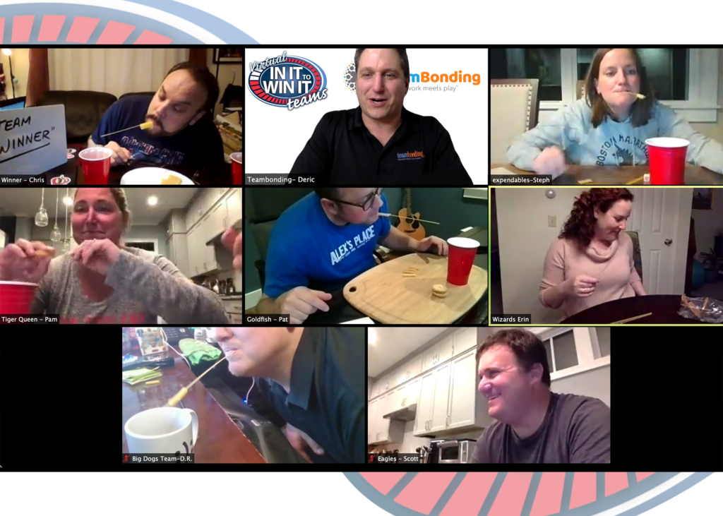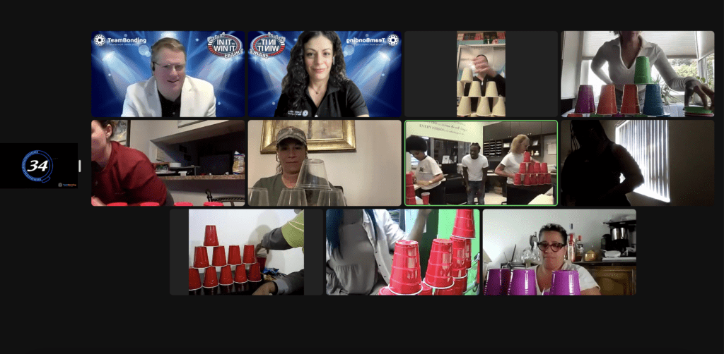In advance of your big event, we provide everyone with a simple list of household items they’ll want to have on hand. Come game day, your TeamBonding MC/facilitator explains each challenge to your group. Teams then split off into virtual breakout rooms where they can strategize, assign roles, and practice their challenges. This also gives teams the chance to brainstorm ways they can dominate the competition.