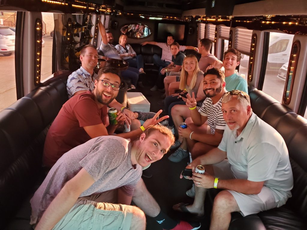 This event is fully customized, every time. We select the locations your team visits based on information you provide. The bus itself is typically a school bus, but you’ll have upgrade options for party or coach buses.