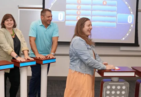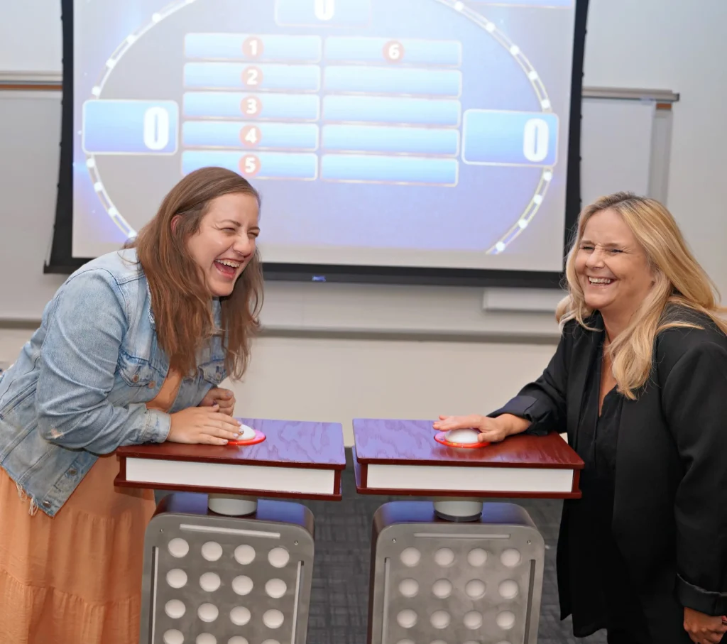 Nope! We handle all setup, props, and technology for your corporate game show. All you need is a suitable space and a team ready to play, laugh, and compete. We’ll bring everything you need to make your customized game show experience run seamlessly.