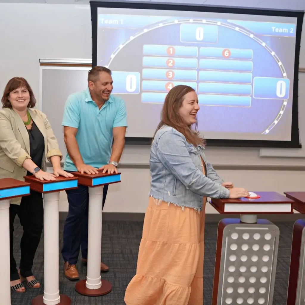 While this version is designed for in-person fun, we also offer virtual and hybrid corporate game show experiences. Ask your event manager about options to include remote players in the excitement—because everyone deserves to join the game show challenge!
