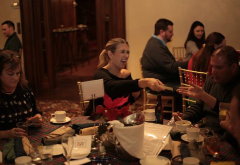 The Progressive Dinner is fast-paced fun as you share a different table with different people for each course: appetizer, salad, main course, and dessert. Each course features a tabletop game or exercises for everyone to do together. It is all carefully designed to encourage team interaction and fun while improving team skills. “Cocktail Party” is the communication icebreaker that starts the evening off right with a fun and energetic game for the entire group.
