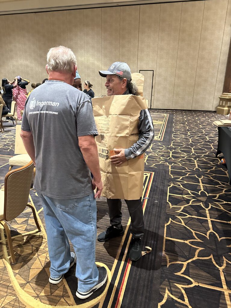 As in the real fashion world, everything comes down to the moment of truth – the big runway show. Teams select some members to model their creations on the catwalk. Others get to describe and pitch their looks to the panel of judges (yours or ours). It’s difficult to communicate just how much contagious laughter this runway show generates. Not to mention the crazy photos for social media and/or newsletter content.