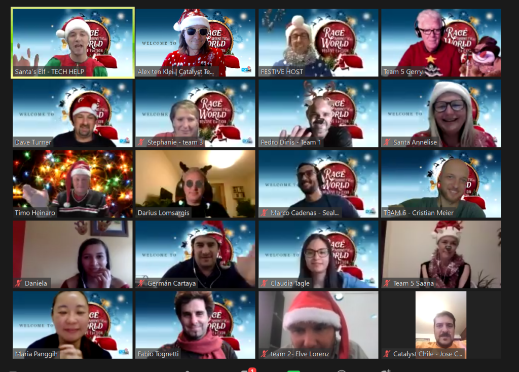 The object of this game is to deliver presents to children in as many countries as possible before sunrise. Participants are grouped into smaller teams so they can connect in breakout rooms. They’ll need to quickly determine individual roles. Each team needs one Santa, with the rest working as Elves. The catch? Santa must enter the answers and submit photos for challenges, but can’t actually see the challenges. On the other hand, your elves understand the challenges but can’t enter any answers.